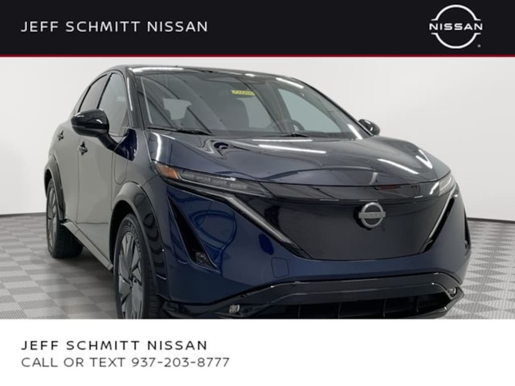 Certified. Deep Ocean Blue Pearl/Black Diamond Pearl 2025 Nissan Ariya PLATINUM+ e-4ORCE